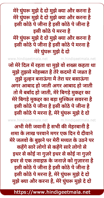 Lyrics of Mere Ghungru Mujhe De Do Mujhe Kya Aur Karna Hai - मेरे घुंगरू मुझे दे दो मुझे क्या और करना है