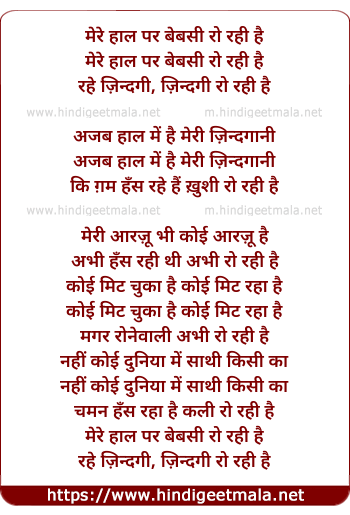Lyrics of Mere Haal Par Bebasi Ho Rahi Hai - मेरे हाल पर बेबसी रो रही है