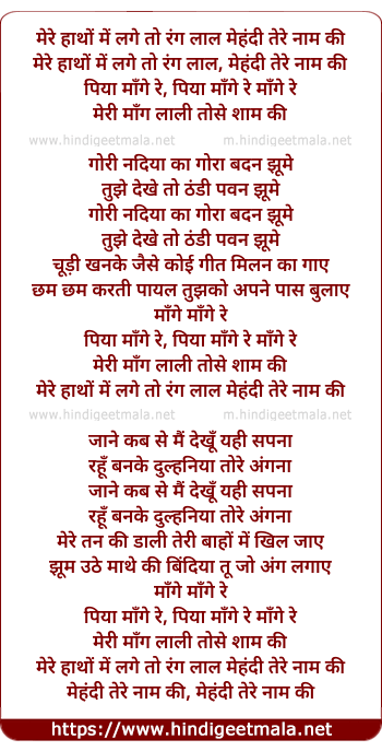 Lyrics of Mere Hatho Me Lage To Rang Lal - मेरे हाथों में लगे तो रंग लाल