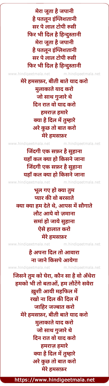 Lyrics of Mere Humsafar Beeti Baatein Yaad Karo (Parody) - मेरा जूता है जपानी