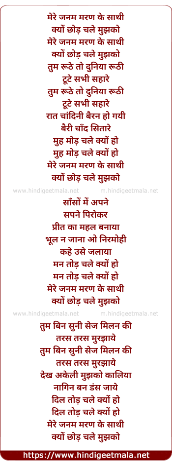Lyrics of Mere Janam Maran Ke Saathi