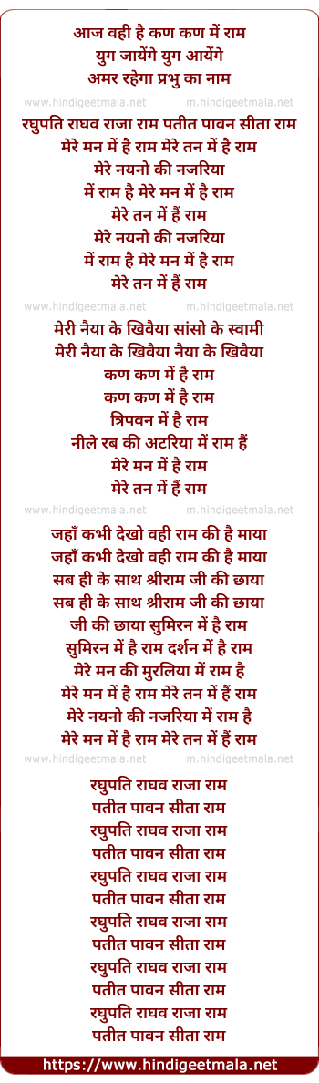 Lyrics of Mere Man Me Hai Ram Mere Tan Me Hai Ram - मेरे मन में है राम मेरे तन में हैं राम