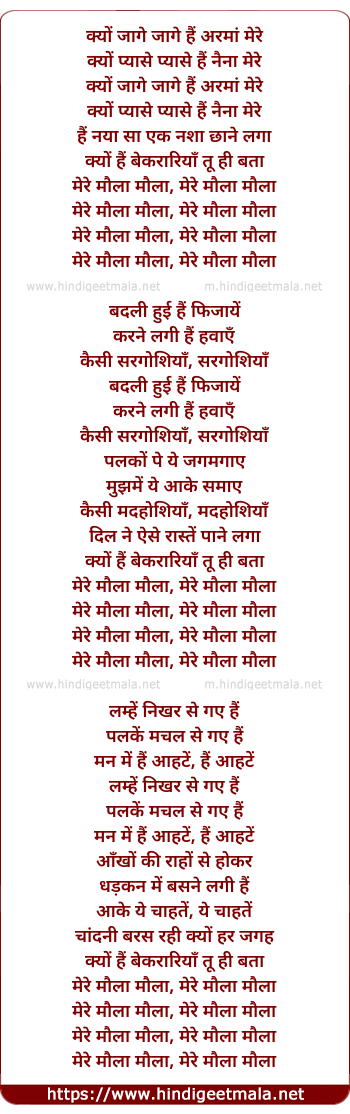 Lyrics of Mere Maula (Ali Abbas) - क्यों जागे जागे हैं अरमां मेरे