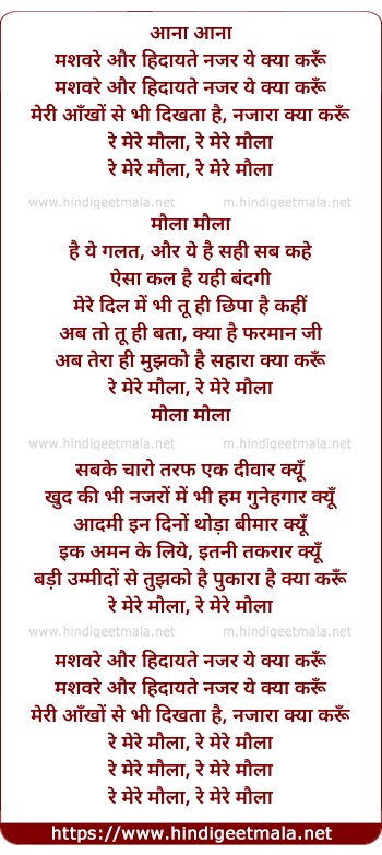 Lyrics of Mere Maula Mere Maula - मेरे मौला मेरे मौला