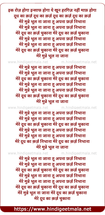 mere munne bhul na jana dudh ka karz dudh ka karz