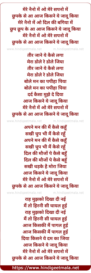 Lyrics of Mere Naino Me Mere Sapno Me - मेरे नैनो में ओ मेरे सपनो में