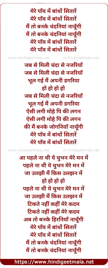 Lyrics of Mere Paanv Me Bandho Sitare - मेरे पाँव में बांधों सितारें