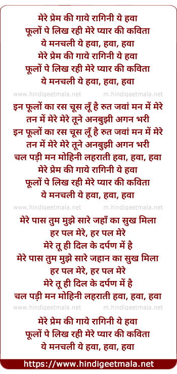 Lyrics of Mere Prem Ki Gaaye Ragini - मेरे प्रेम की गाये रागिनी