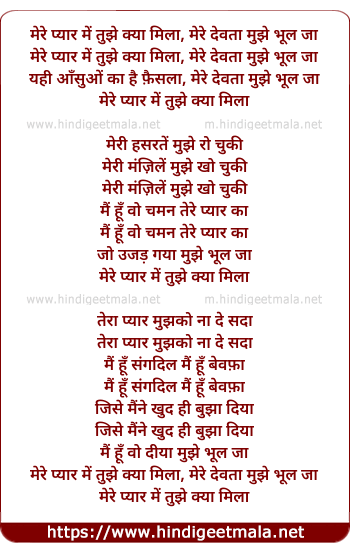 Lyrics of Mere Pyar Me Tujhe Kya Mila - मेरे प्यार में तुझे क्या मिला