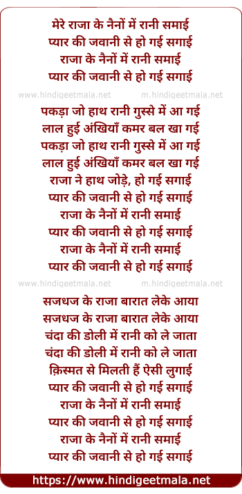 Lyrics of Mere Raja Ke Naino Me - मेरे राजा के नैनों में