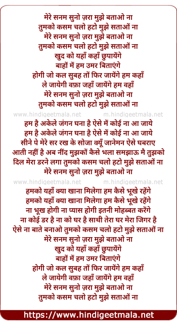 Lyrics of Mere Sanam Suno Zara Mujhe Batao Na - मेरे सनम सुनो ज़रा मुझे बताओ ना