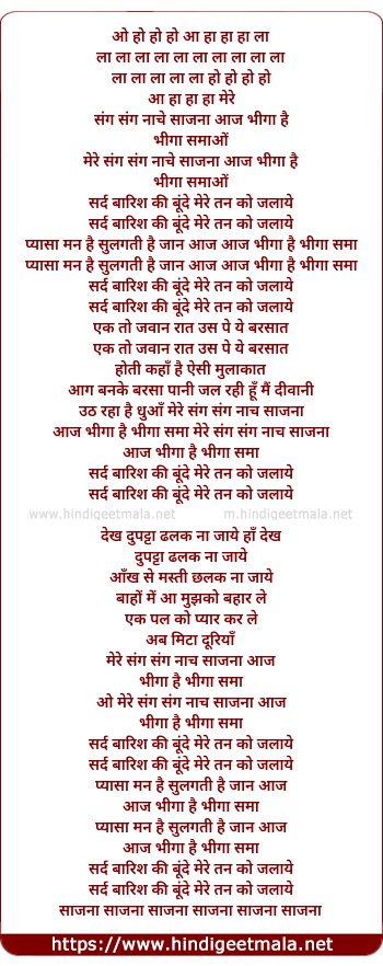 aaj bheega hai bheega sama o mere sang sang naach saajna