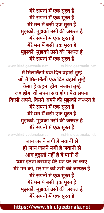 Lyrics of Mere Sapno Me Ek Surat Hai - मेरे सपनो में एक सूरत है