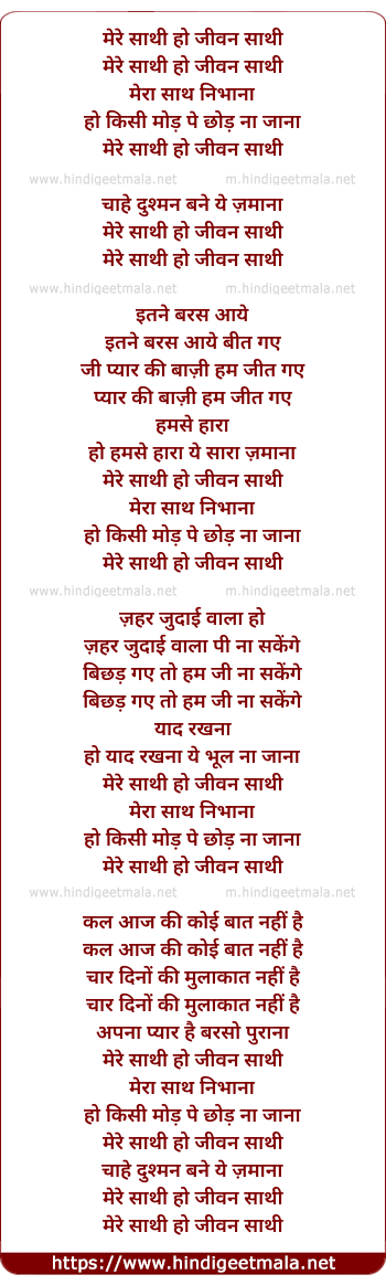 Lyrics of Mere Sathi Ho Jeevan Sathi Mera Saath Nibhana - मेरे साथी हो जीवन साथी