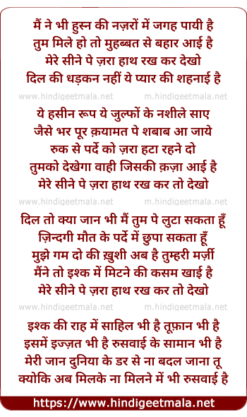 Poetic Translation - Lyrics of Mere Seene Pe Zara