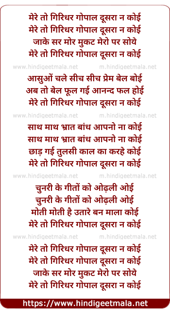 Lyrics of Mere To Giridhr Gopal