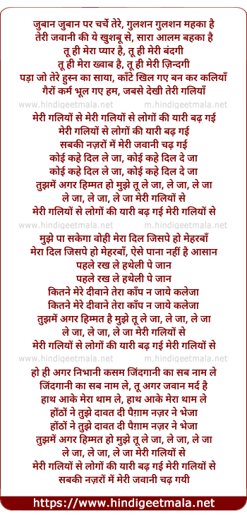 Lyrics of Meree Galiyo Se Logo Kee Yaree Badh Gayee - मेरी गलियों से लोगों की यारी बढ़ गई