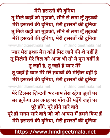 Lyrics of Meree Hasarato Kee Duniya - मेरी हसरतों की दुनिया