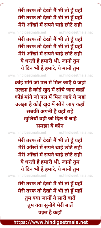 Lyrics of Meree Taraf - मेरी तरफ तो देखो मैं भी तो हूँ यहाँ
