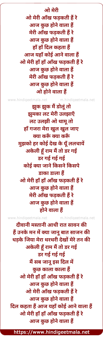 Lyrics of Meri Aankh Phadakti Hai Ri - ओ मेरी