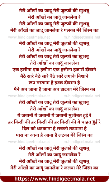 Lyrics of Meri Aankho Ka Jadu Meri Julfo Ki Khusbu - मेरी आँखों का जादू मेरी जुल्फों की खुशबू