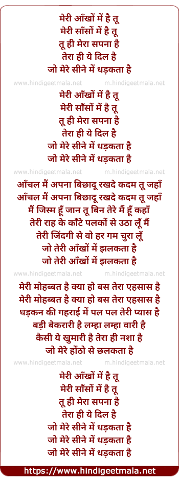 Lyrics of Meri Aankhon Mein Hain Tu - मेरी आँखों में है तू