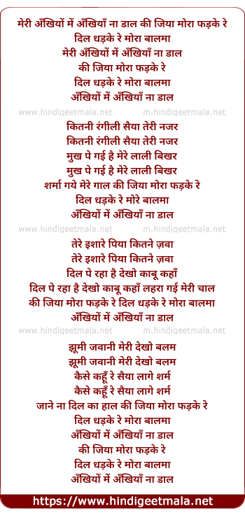 Lyrics of Meri Ankhiyo Me Ankhiya Na Daal - मेरी अँखियों में अँखियाँ ना डाल