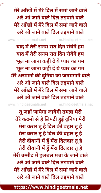 Lyrics of Meri Ankho Me Mere Dil Me Sama - मेरे आँखों में मेरे दिल में समां