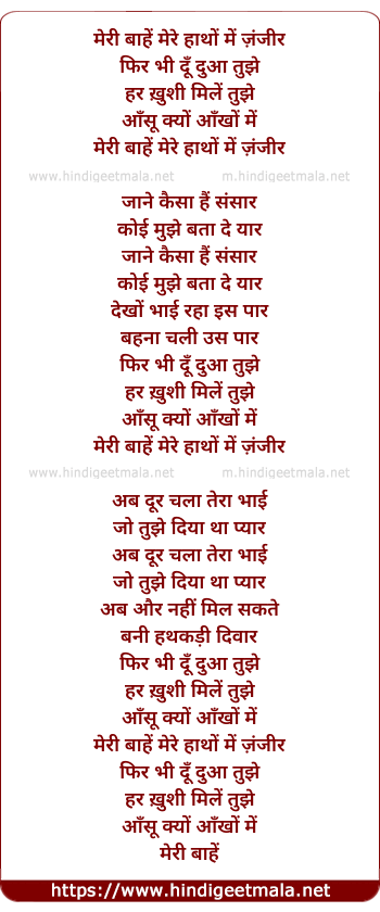 Lyrics of Meri Bahe Mere Hatho Me Zanjir - मेरी बाहें मेरे हाथों में ज़ंजीर