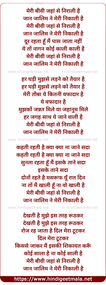 Lyrics of Meri Biwi Jahaa Se Nirali Hai - मेरी बीवी जहां से निराली है