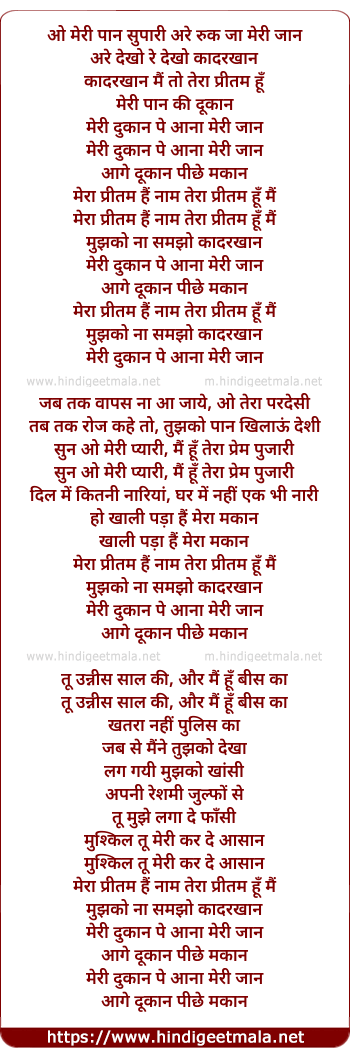 Lyrics of Meri Dukan Pe Ana Meri Jaan - मेरी दुकान पे आना मेरी जान