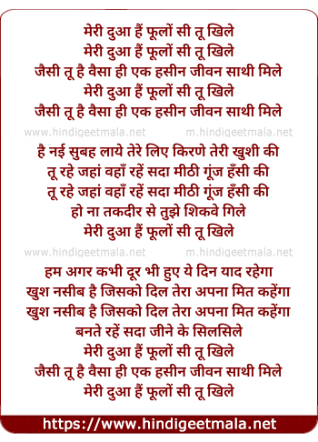 Lyrics of Meri Duva Hai Phulo Si - मेरी दुआ हैं फूलों सी