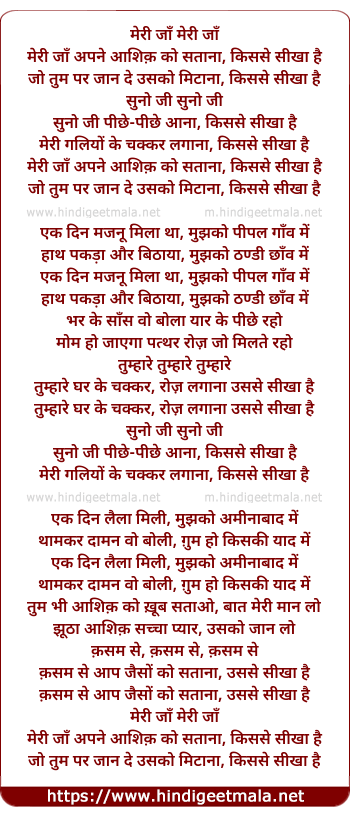 Meri Jaan Apne Ashiq Ko Sataana Kisse Sikha - मेरी जाँ अपने आशिक़ को सताना, किससे सीखा है