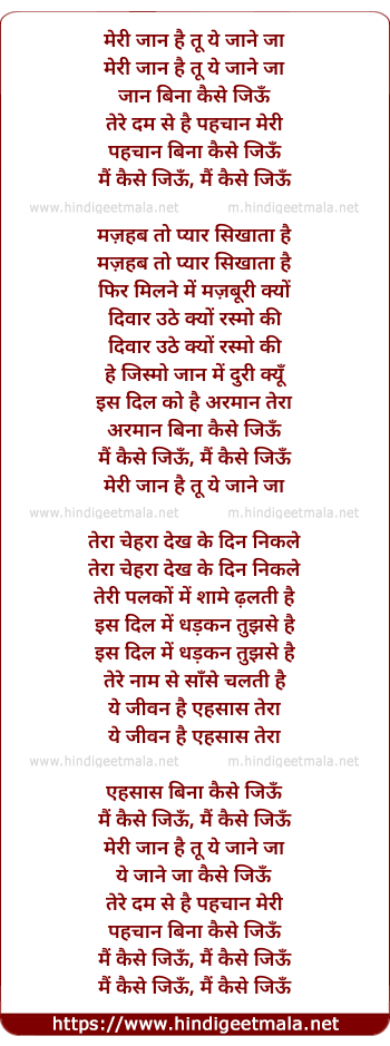 Lyrics of Meri Jaan Hai Tu - मेरी जान है तू