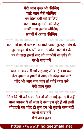 Lyrics of Meri Jaan Kuchh Bhi Kijiye, Chahe Jaan Meri Lijiye - मेरी जान कुछ भी कीजिये, चाहे जान मेरी लीजिये