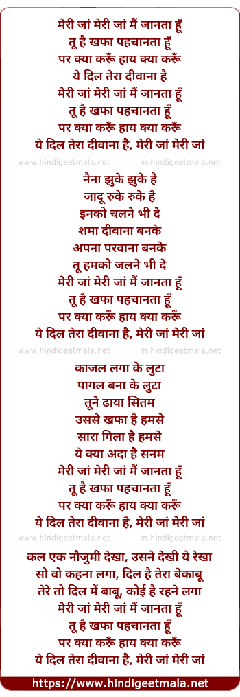 Lyrics of Meri Jaan Meri Jaan Mai Janta Hu - मेरी जां मेरी जां मैं जानता हूँ