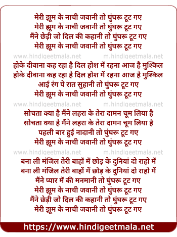 Lyrics of Meri Jhum Ke Nachi Jawani - मेरी झूम के नाची जवानी