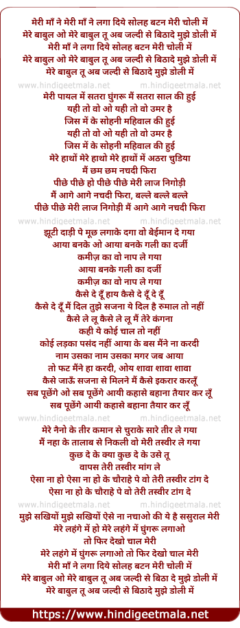 Lyrics of Meri Ma Ne Laga Diye Solah Button Meri Choli Me - मेरी माँ ने लगा दिये सोलह बटन मेरी चोली में