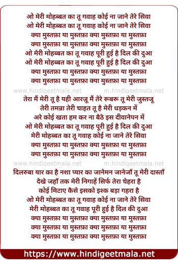 Lyrics of Meri Mahobbat Ka Tu Ganva, Koi Na Jane Tere Siva, Ya Mustafa - ओ मेरी मोहब्बत का तू गवाह, कोई ना जाने तेरे सिवा, या मुस्तफा