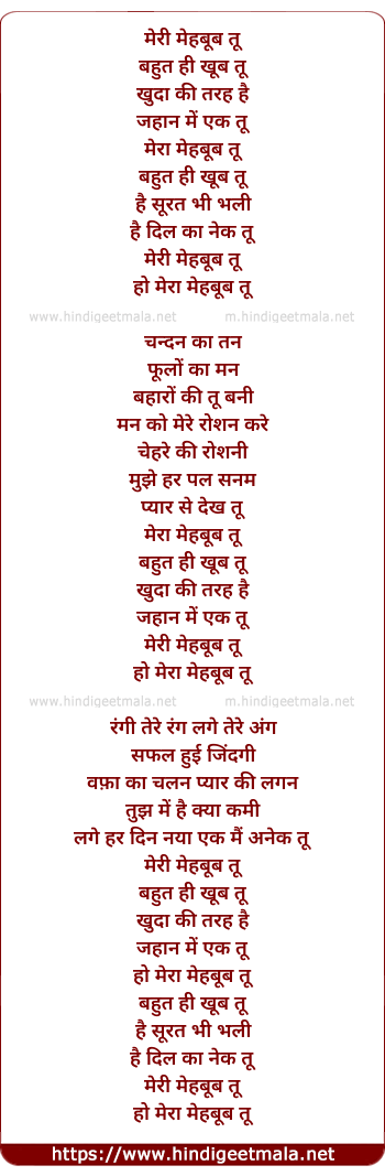 Lyrics of Meri Mehboob Tu Bahut Hi Khub Tu - मेरी महबूब तू बहुत ही खूब तू
