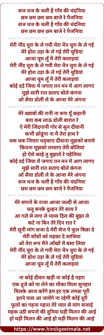 Lyrics of Meri Nind Chura Ke Le Gayi - मेरी नींद चुरा के ले गयी
