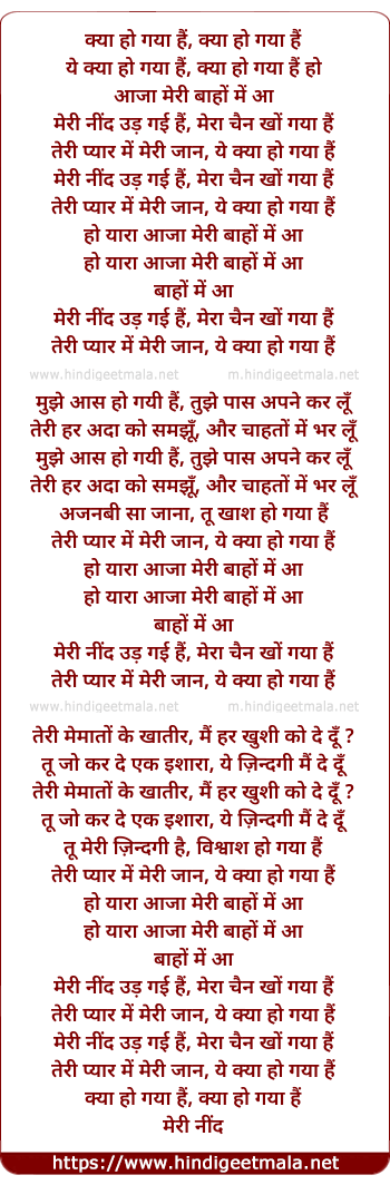 Lyrics of Meri Nind - क्या हो गया हैं, क्या हो गया हैं