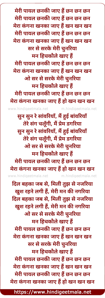 Lyrics of Meri Payal Chhanki - मेरी पायल छनकी जाए हैं छन छन छन