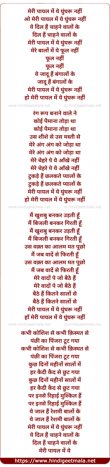 Lyrics of Meri Payal Me Ye Ghungru - मेरी पायल में ये घुंघरू