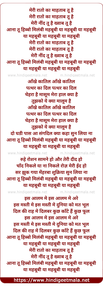 Lyrics of Meri Rato Ka Mahtab Tu Hai - मेरी रातो का महताब तू है