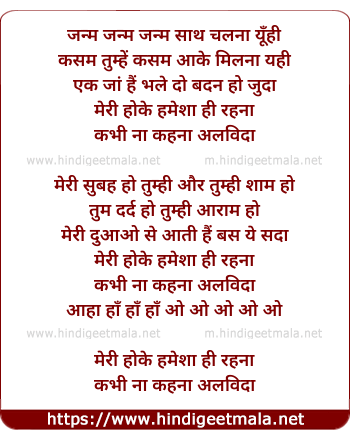 Lyrics of Meri Subah Ho Tumhi (Janam Janam) - मेरी सुबह हो तुम्ही (जन्म जन्म )