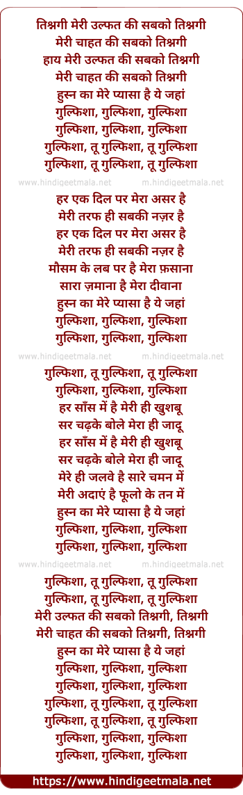 Lyrics of Meri Ulfat Ki Sabko Tishnagi - मेरी उल्फत की सबको तिश्नगी