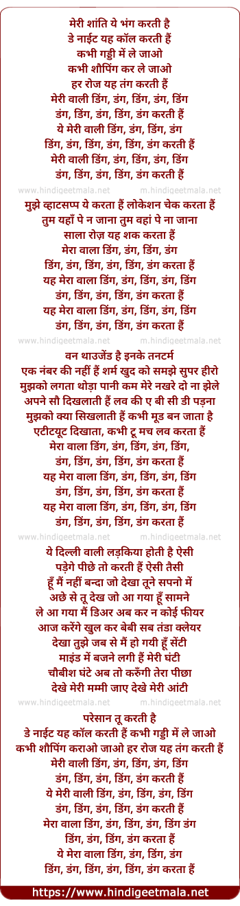 Lyrics of Meri Wali Ding Dang Karti Hai - मेरी वाली डिंग डांग करती है