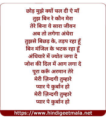 Lyrics of Meri Zindagi Tumhare Pyaar Pe Kurbaan (Sad) - मेरी ज़िन्दगी तुम्हारे प्यार पे कुर्बान