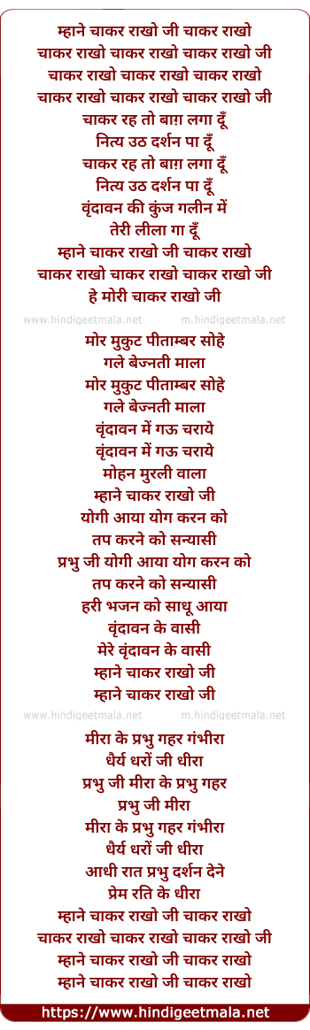 Lyrics of Mhane Chaakar Rakho Ji - म्हाने चाकर राखो जी